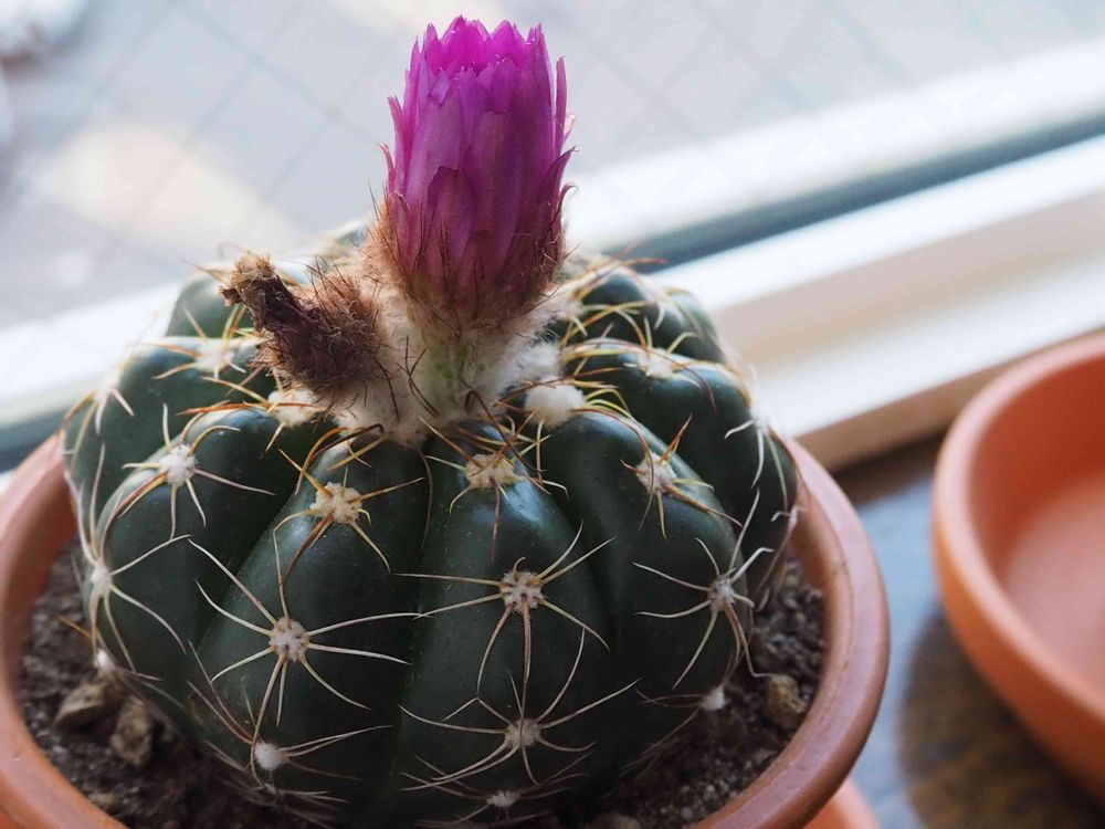サボテンの直径は約9cm、高さは花を入れて約8cmです。