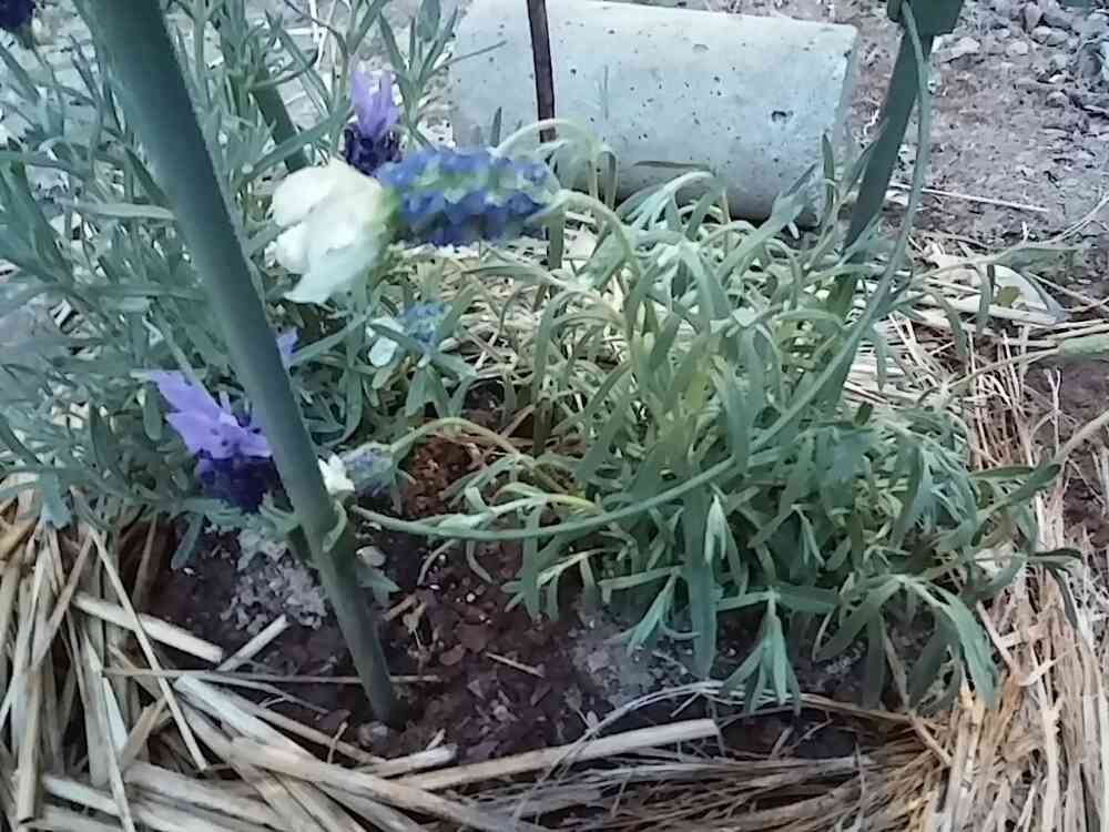 植え付けました。で、植え付けた日が少し…寒い日だったので、藁も敷いておいたのですが…