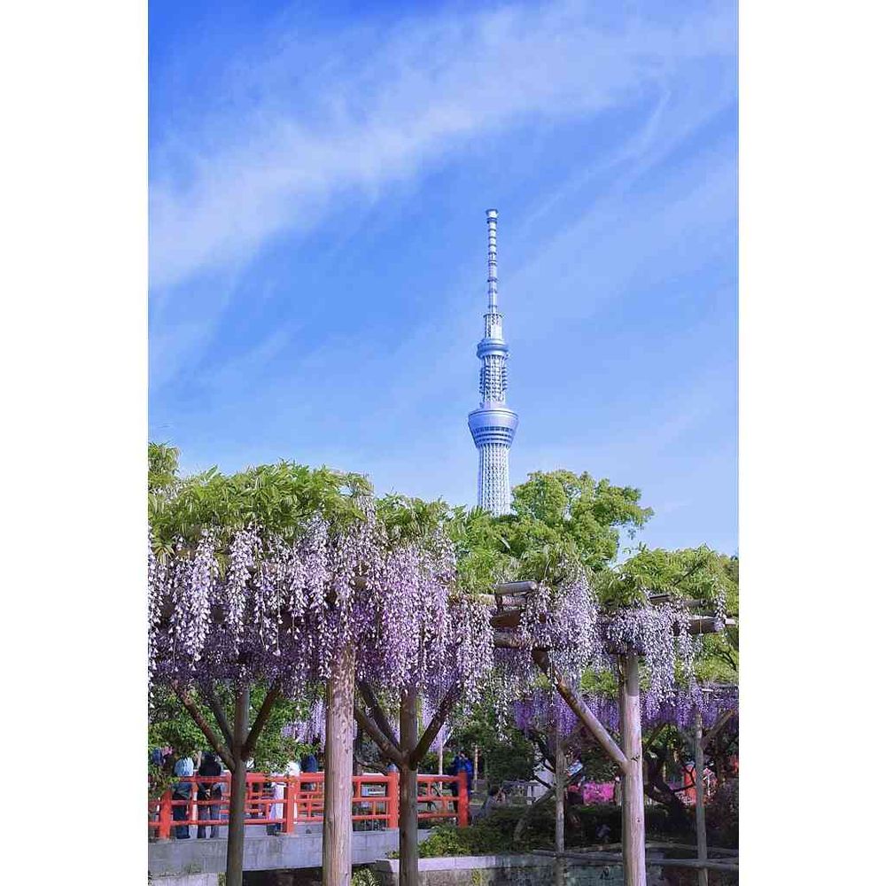スカイツリーとフジの花