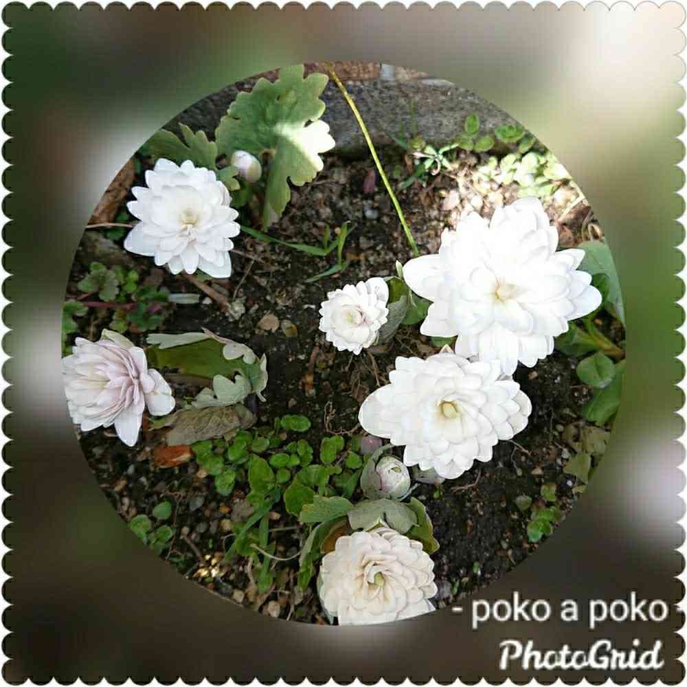 真っ白な花なんだけど左端のと下の花が薄いピンクぽく見えるわ😃🎶🎶