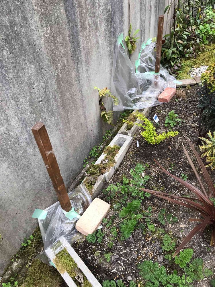雨の隙をついてブロックの穴に木を立てました( ´∀`)✨