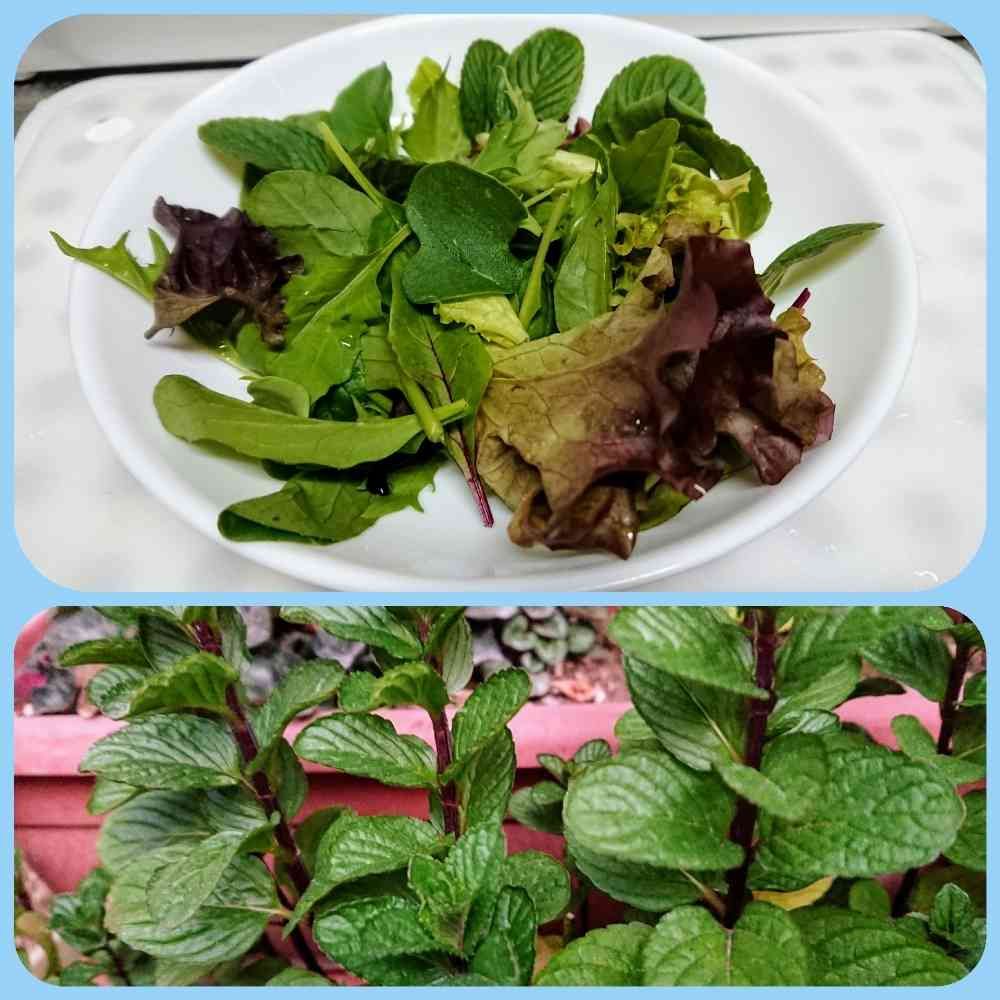 イエルバブエナ🌿を、今日はベビーリーフ🥗に混ぜて食べました(๑´ڡ`๑)