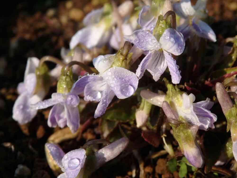 朝露に濡れたスミレ