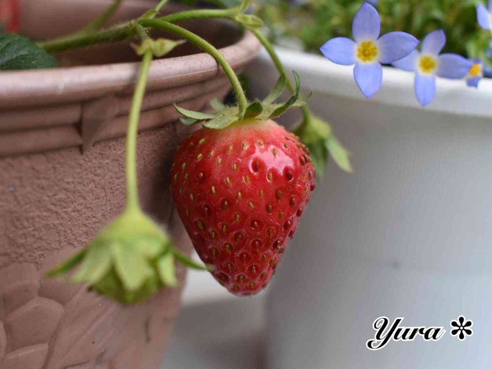 初めて実ったの?!ご家族で分けっこかな( ⸝⸝⸝ᵕᴗᵕ⸝⸝⸝ )🍓🍓🍓