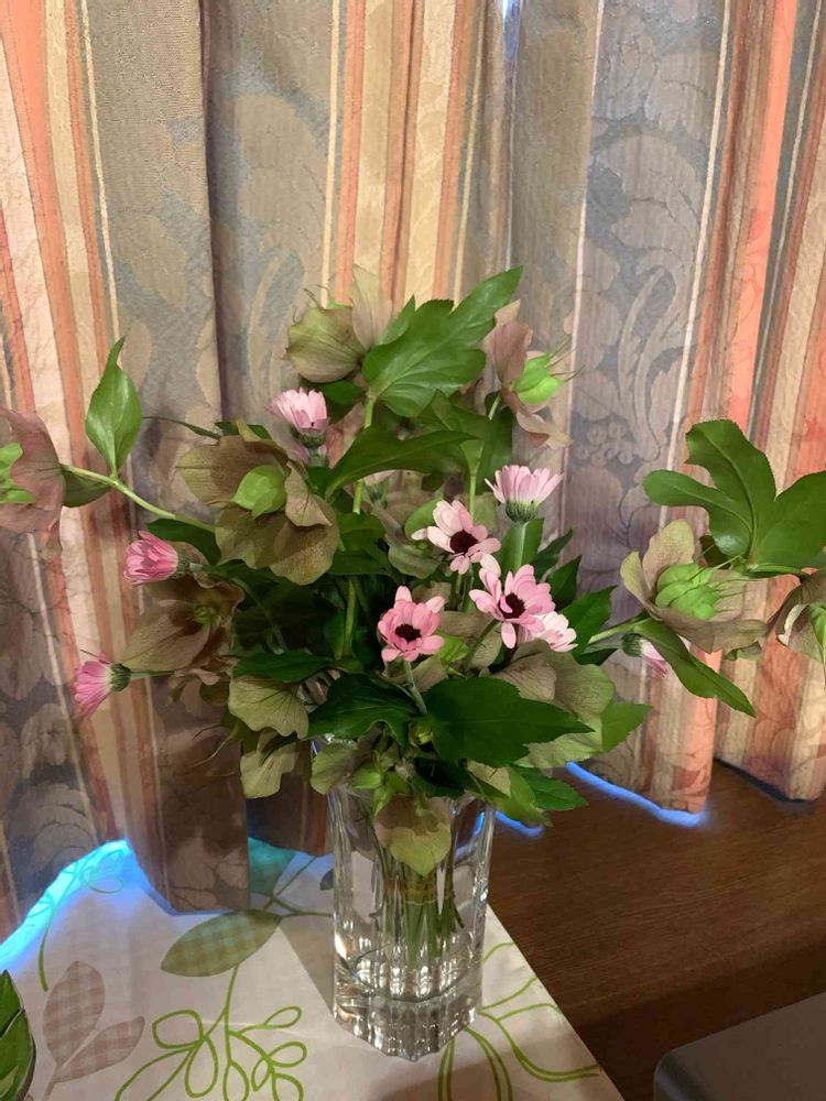 昨日はクリスマスローズの花柄取りを一気にしていましたが、ゴミ袋に押し込めてしまうのがどうしてももったいない3本を切り花にしました☺️