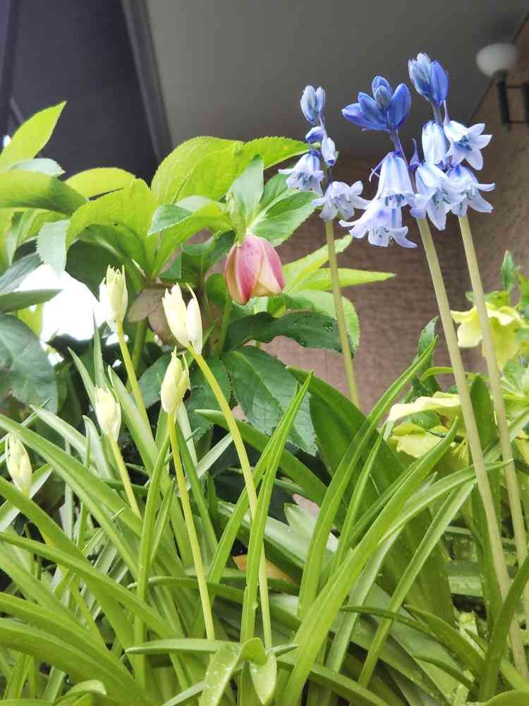はい、白いのもシラーです。こちらはまだつぼみですが、可愛いです。シラーはもう少したくさん咲いてから……と思ってると、すぐに下の方から花がダメになっちゃって、撮影のチャンスを逃しちゃうんです😝