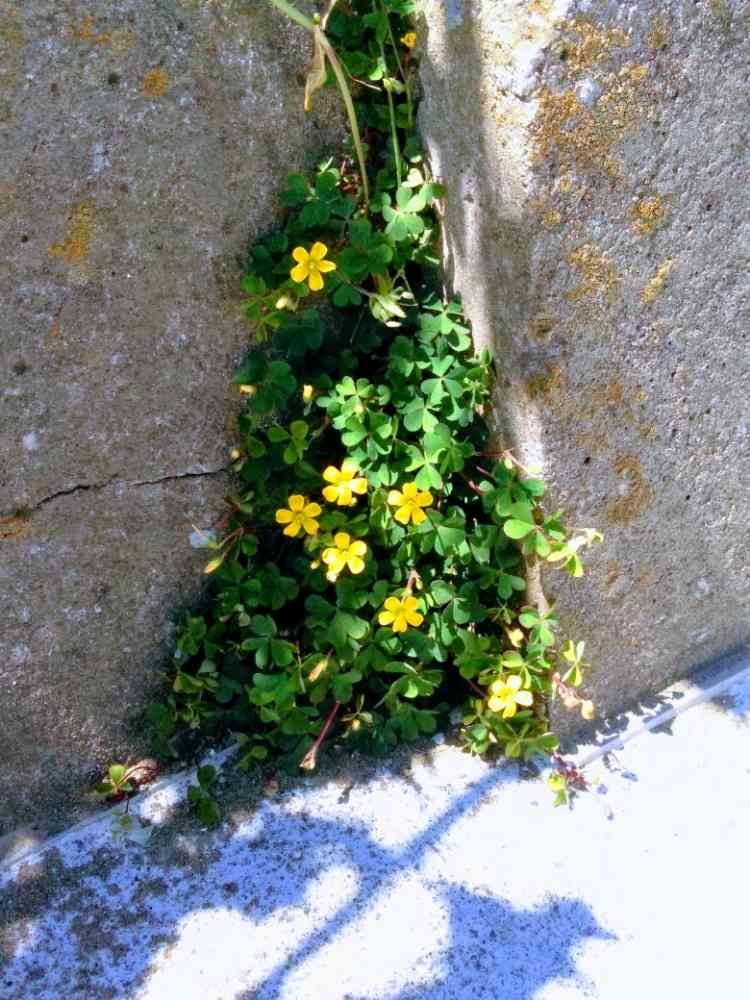 セメントの隙間から、畑によじ登る、草花です。ど根性の花