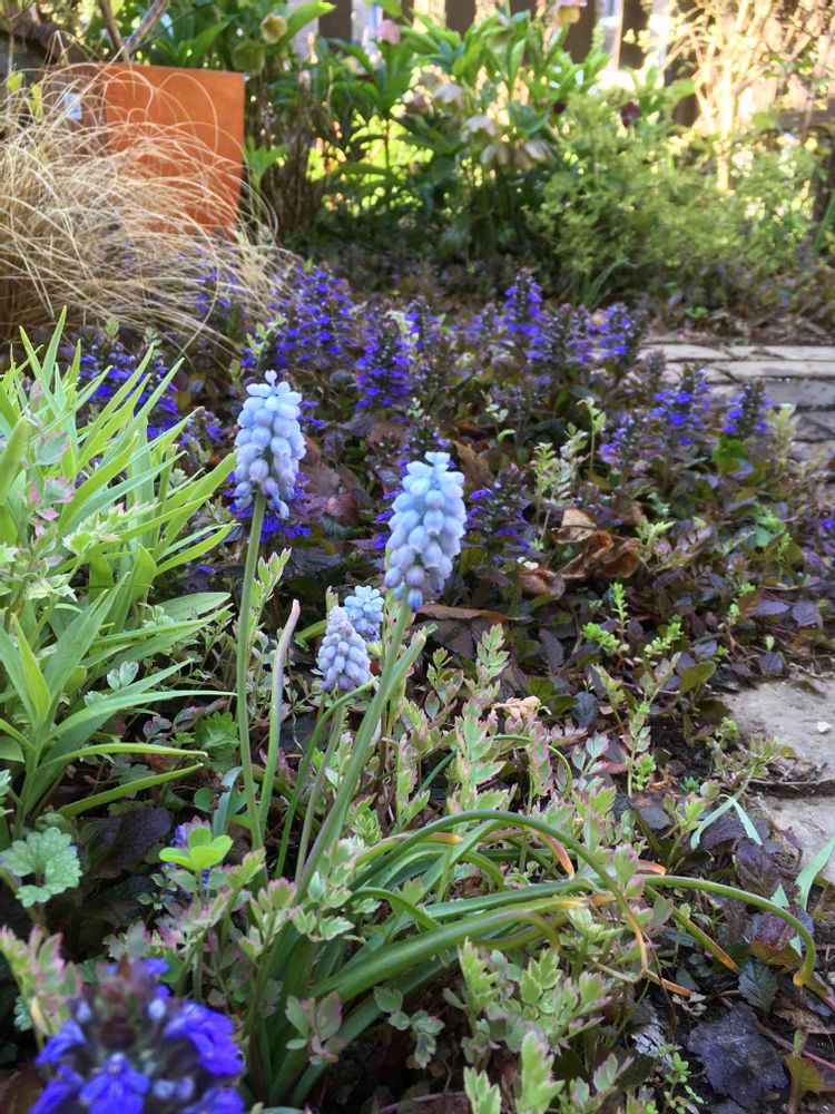アジュガとせめぎ合ってますが、なんとなく入り混じる感じになるように、たまに調整しています😊