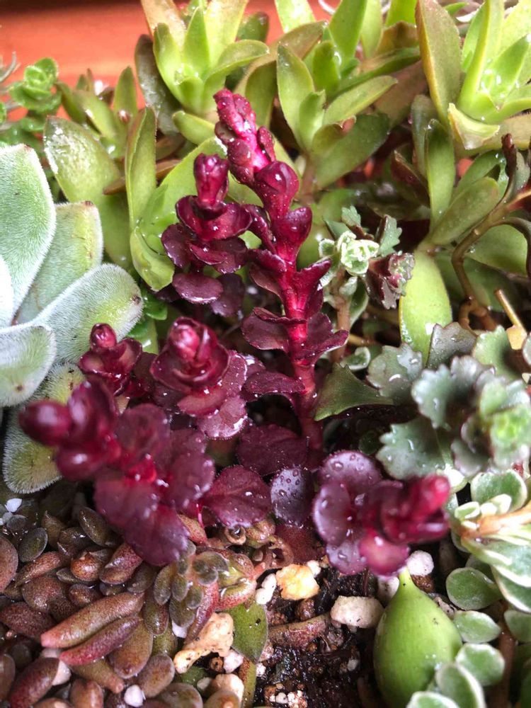 元々寄せ植えの中にあったのですが元気がなくなって室内に移動たら真っ赤に復活。