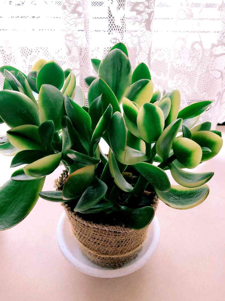 斑入りの金のなる木なかなか見ないですね🏡は緑だけ、フチが赤いく可愛いですけどね🥰🤗