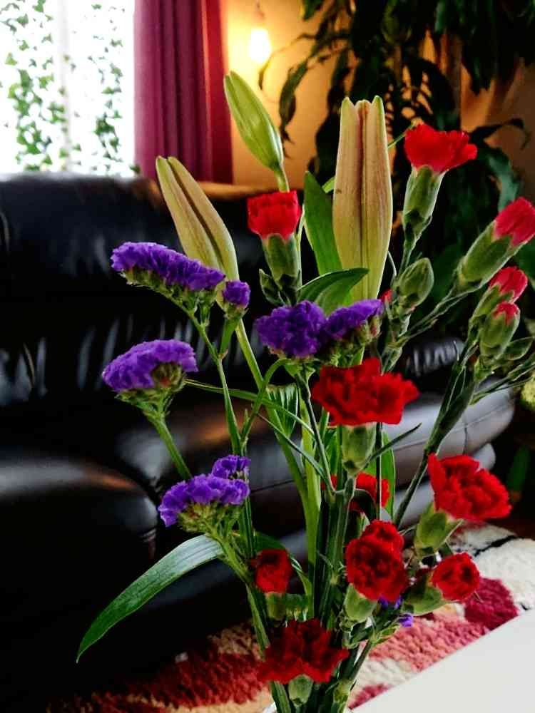 一週間の始まりの朝の雨💦気分転換に昨日買ってきたお花と間接照明で撮って📷みました😃🎵🌸🍀