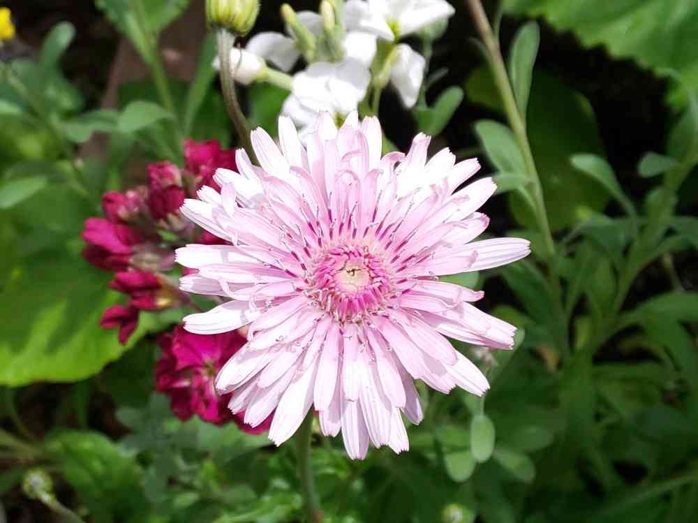 種まき育ちの、桃色タンポポやっと咲いた😍