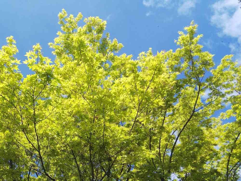 黄緑色の新緑が陽射しにキラキラ眩しい🤩