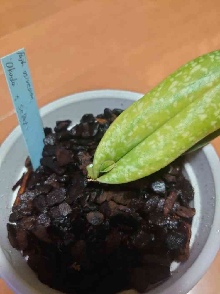 去年鉢が落ちてきて葉が折れてしまったニベウムに新葉が出てきました。