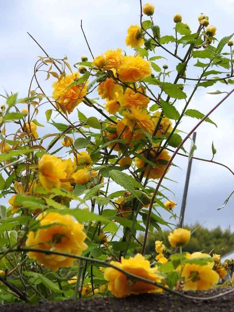 民家の塀越しに覗く綺麗なヤマブキ🌻🤩
