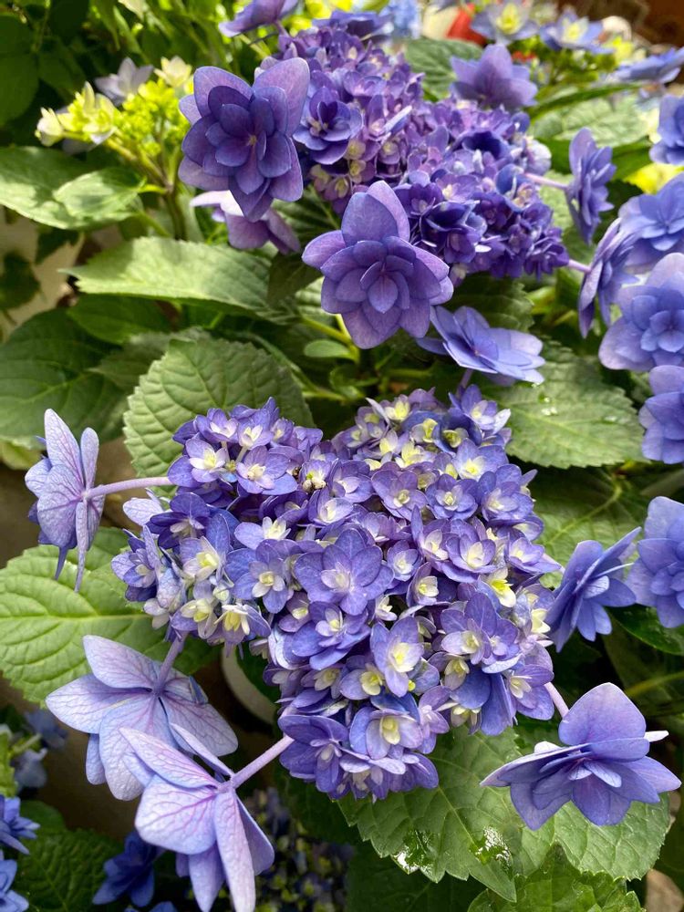 土のpHに左右されるので、藍色に少し赤が入り紫色になったりもしますが、それはそれで見事です。