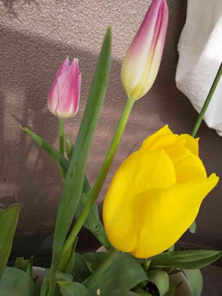 元気印の💛チューリップ🌷に負けじと、ソロソロ咲きはじめたピンク🌷さん😅👍️