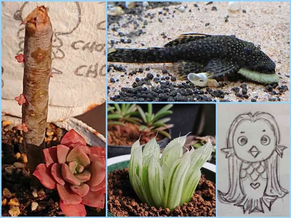 プレコのご飯は多分、草っぽいタブレットかな~( *´艸`)🌿水槽の苔もたべて~✨