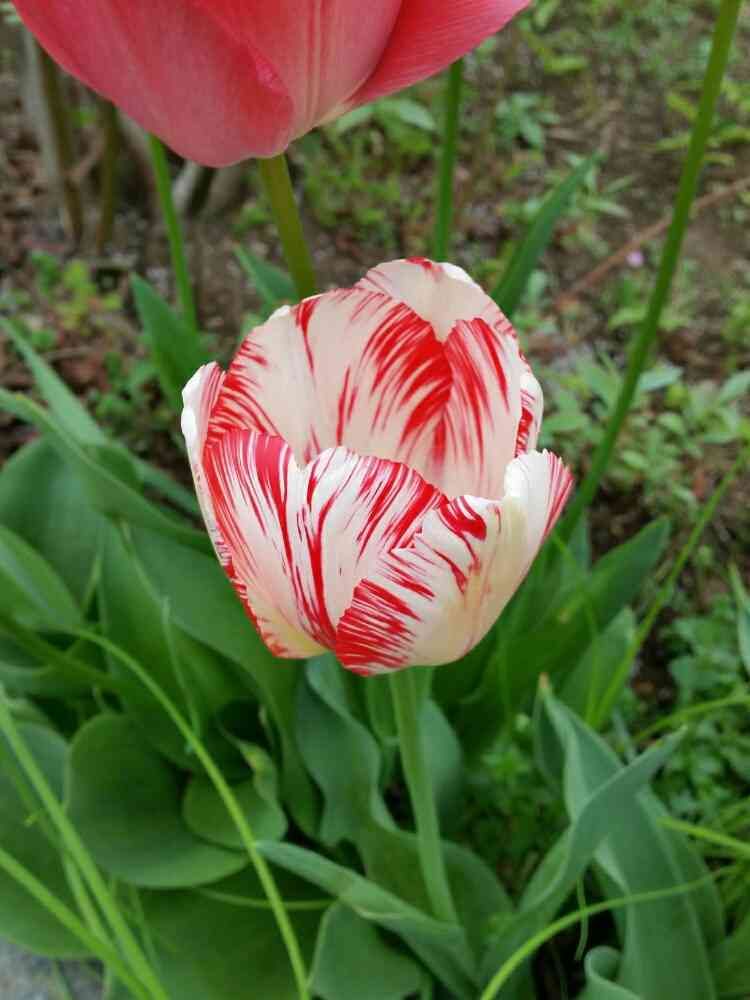 去年の球根から咲いた、庭のチューリップ。オシャレな子を発見(*´-`)❤
