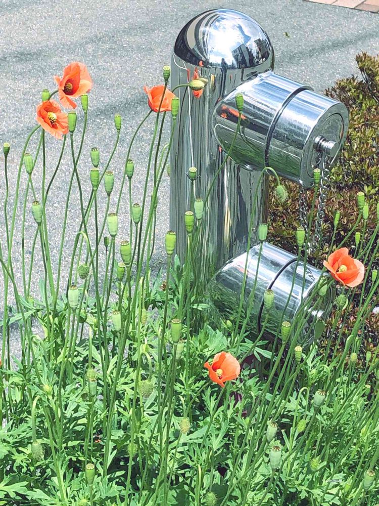 ナガミヒナゲシと消火栓、(*^ー゚)b クッ゙❤