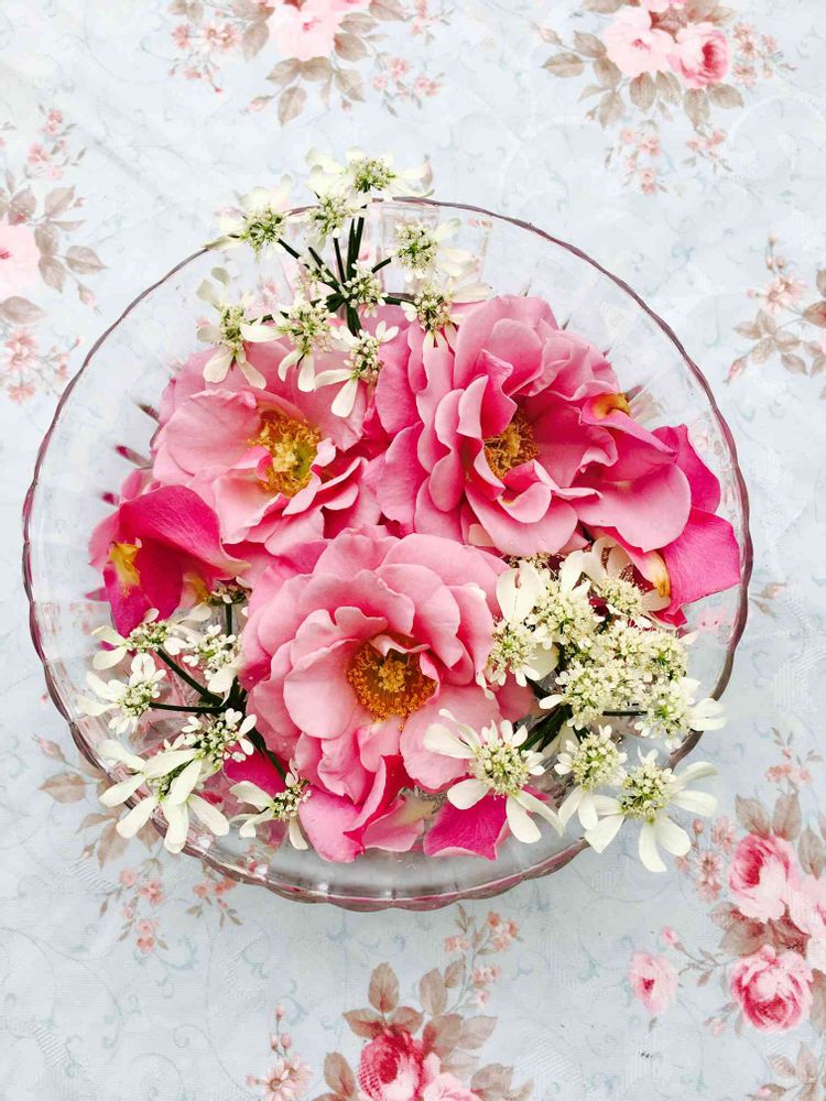 しかも、テーブルクロスもバラの模様で❣️