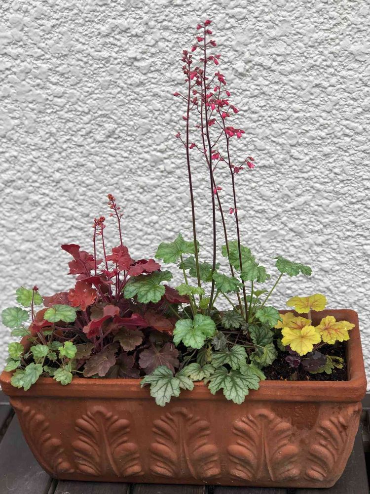 地植えのヒューケラがだんだん小さく消えそうになったので、掘りあげてヒューケラだけの寄せ植えにしてみました😊