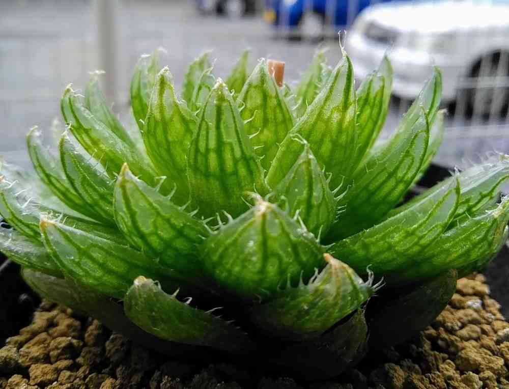picはハオルチア36号の🌵桜水晶🌵昨夏徒長して仕立て直しました。今年はどうかな🤔