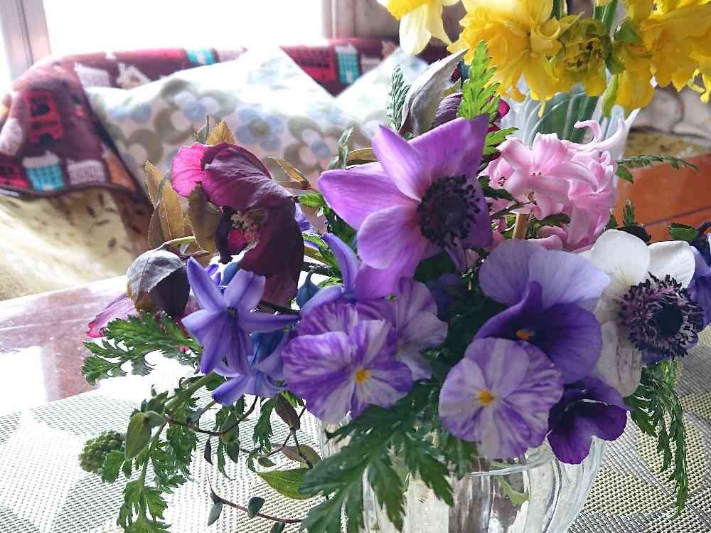 雨上がりにお花を集めたら💜アレンジに…😊🍀