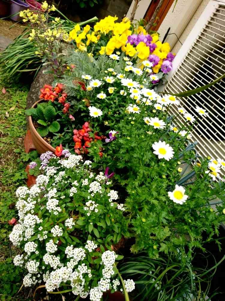ビオラは昨秋、アリッサムは花友さんの挿し芽、金魚草は去年からのもの。