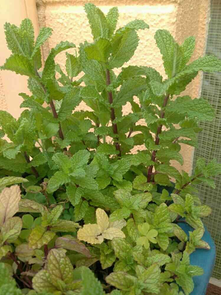 ミント。種類は分かりませんが、切り戻した後温かくなって来て、グングン生長しています😊