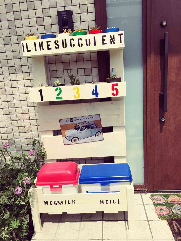 玄関先に置いてある牛乳受けがあまりにもみすぼらしかったんで余ってた廃材など使って牛乳受け&多肉棚作りました😁