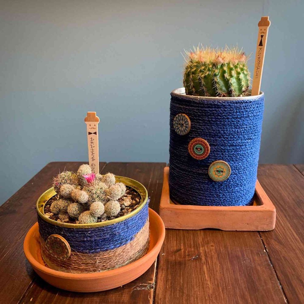 かわいい~(∩ˊᵕˋ∩) リメ缶とサボテンがいい雰囲気👍✨コーヒーマドラーの名札もすごくかわいいです👍✨