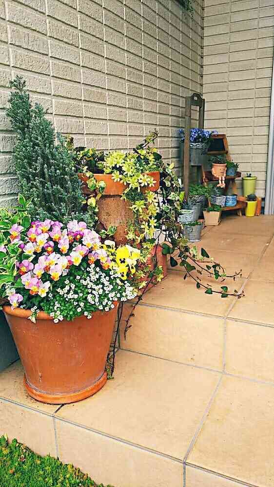 玄関,ツルニチニチソウ,ビオラの投稿画像
