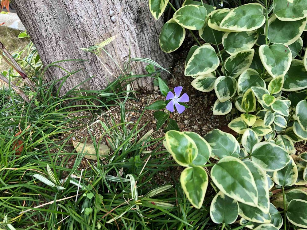 公園に咲いてたツルニチニチソウ を2歳の娘とほっかえして、家の庭に移植しました。