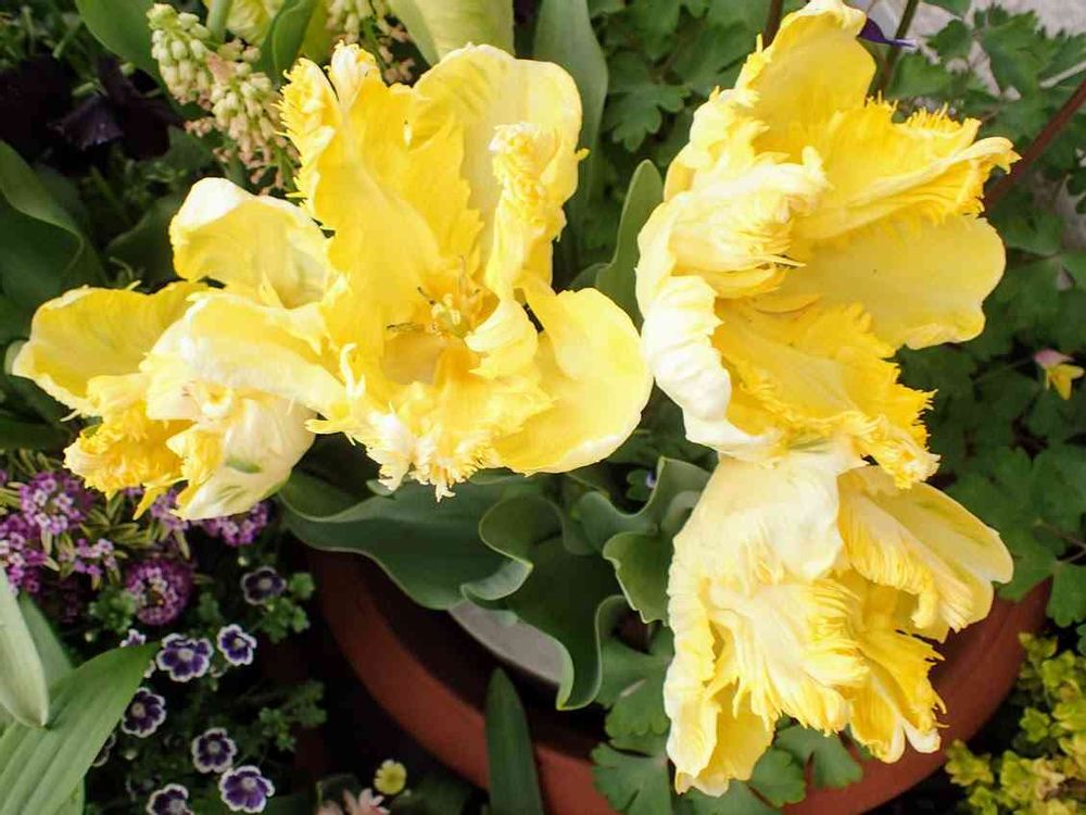 前出の、チューリップ・パロットゴールドです。咲き進むと緑色は消えて、黄色味が濃くなってきますね😊💛😍