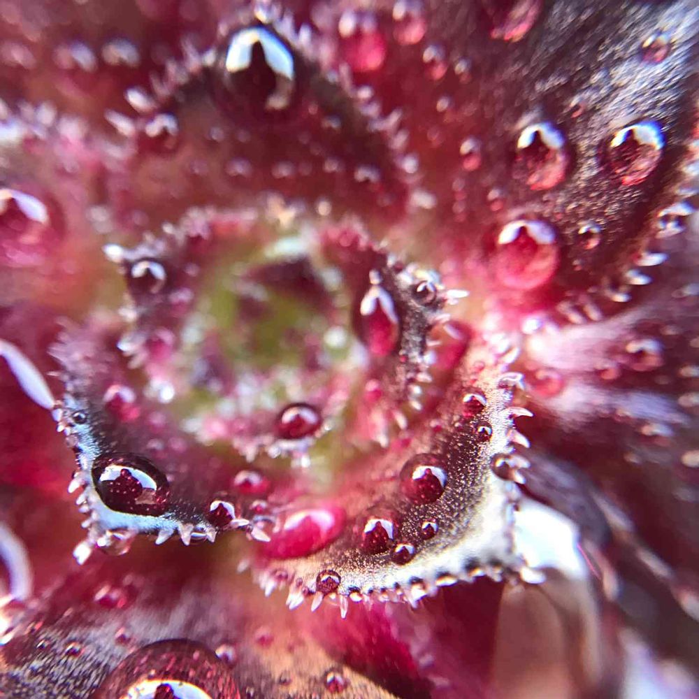 雨晒しの自然な雨粒と自然光とマクロレンズ