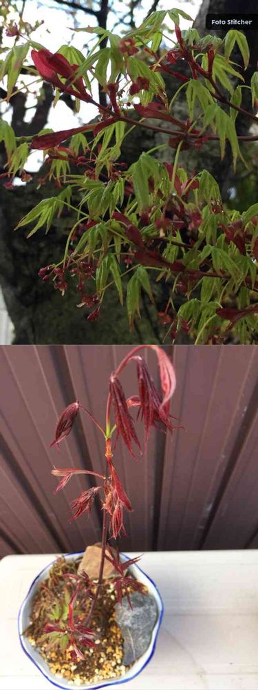 どなただったか忘れちゃったけど、早速今朝緑葉の街路樹のモミジを見に確認して来たのが、上のpicです❣️確かに葉の他に赤い花芽のような花が咲いてました。