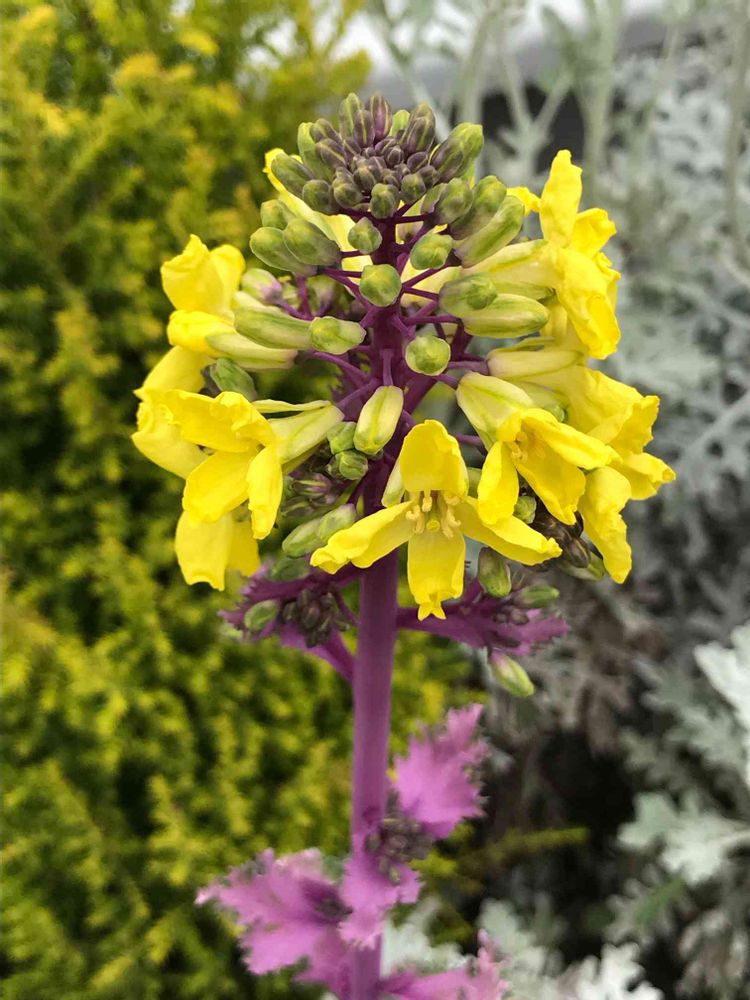 葉牡丹は、地味ってイメージだった私🙇♀️こんなに、ビタミンカラーのお花咲くんだね👍茎や葉の紫色とのコントラストが綺麗だわ💕