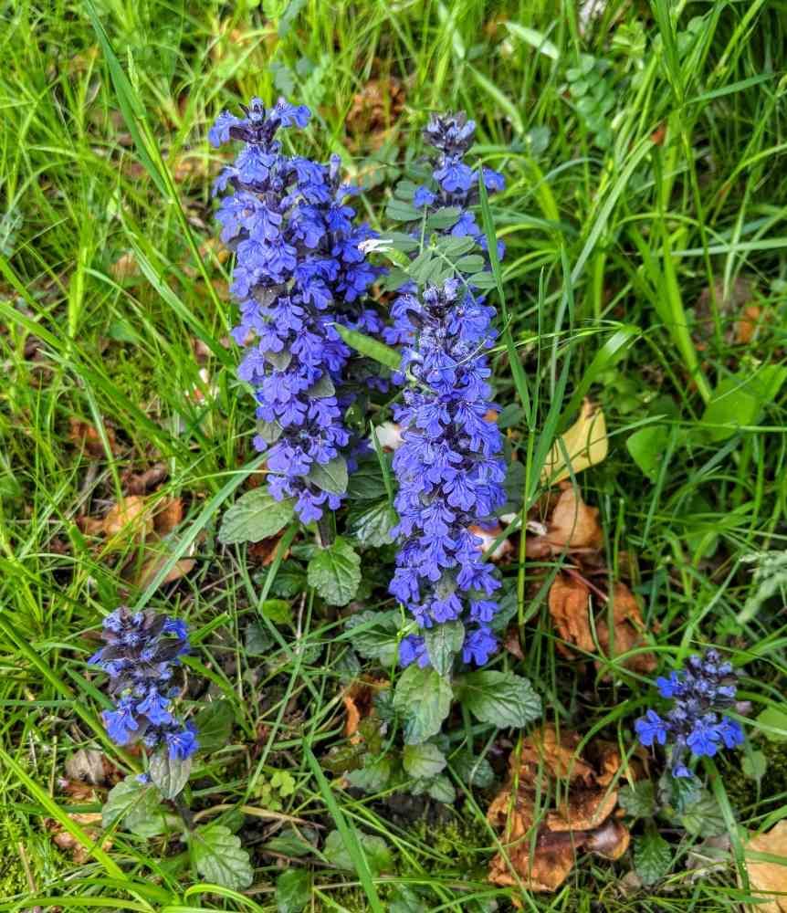 朝の散歩🚶公園の日陰にアジュガの花💜