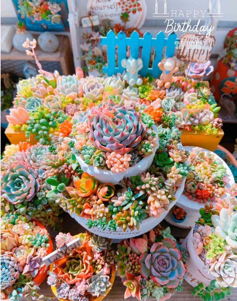 カキちゃんのお誕生日を多肉ケーキ🎂でお祝い㊗したよ〜⸜(*ˊᗜˋ*)⸝💓💓💓✨