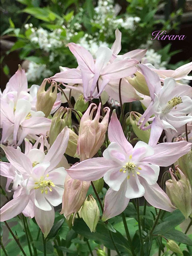 オダマキは種類が多く 八重の華やかなのもありますね。淡いピンクの一重でも八重に負けない可愛いさのカタマリになってます(⁎˃ᴗ˂⁎)