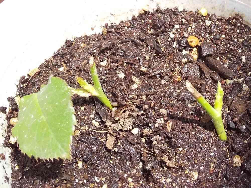 以前、お花屋さんでオマケでもらった1本のミニバラを挿し木にしたものです。