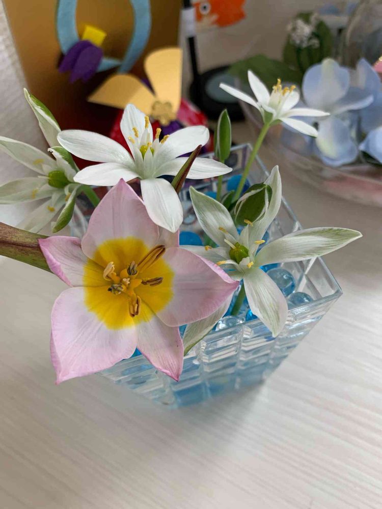 玄関のお花が増えました💐間違えて抜いてしまったチューリップも咲いてくれました✨