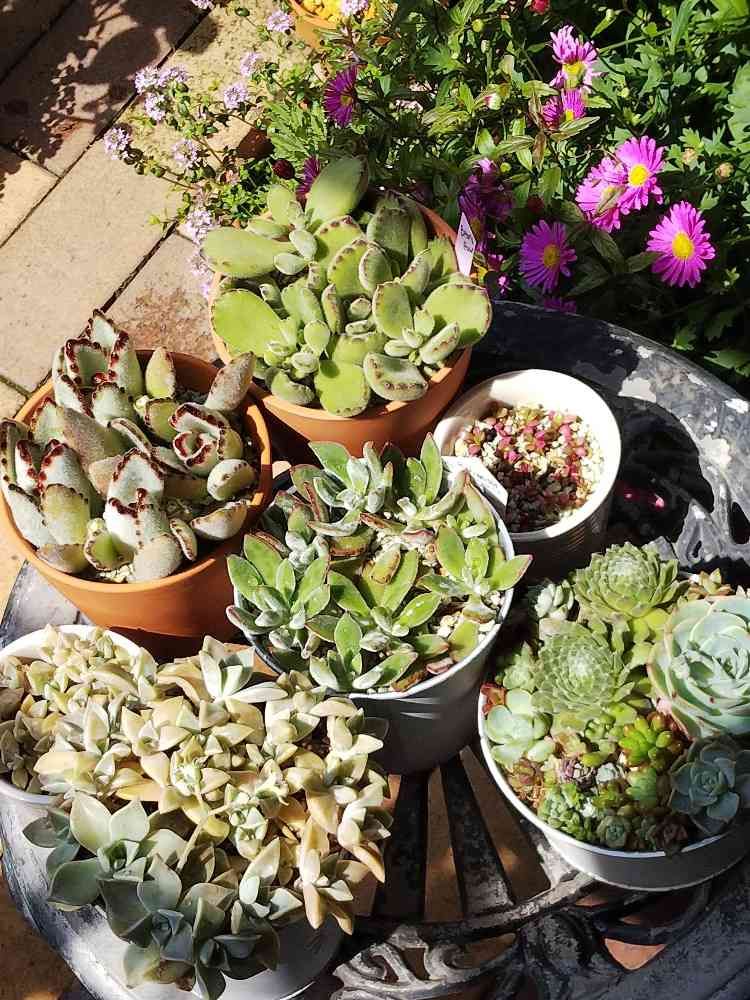 小さな庭,桜吹雪,多肉植物の寄植えの投稿画像