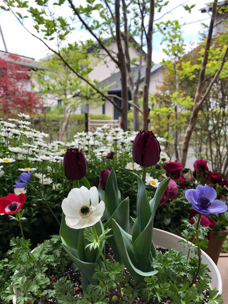 アネモネ、チューリップも可愛いし、バックのノースポールかな…かなりたくさん咲いているようで、とっても綺麗だね✨