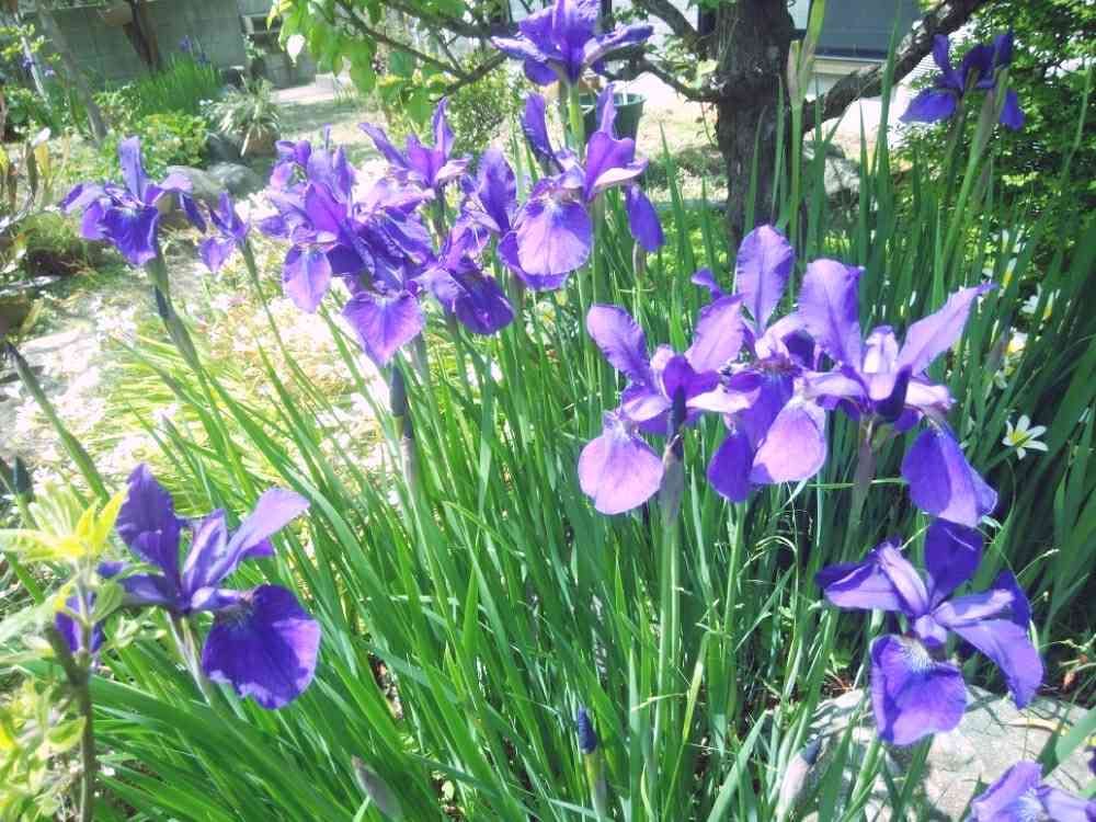 水撒きしてるだけです。一昨年は72輪咲きました。去年は、家で母につきっきりで、アヤメ畑の雑草、紫蘭とか、みつばとか、どくだみとかぬかなかったし、みずもあまりまいていないと、12輪にへりました。72輪のときは、花の手前のじきに、朝から夕方までホースの水だしっぱなしを週一してました。母に水道代高すぎっていわれました。花は終わったら折ります。忘れてたねをニ個つくりました。鉢にうえるつもです。