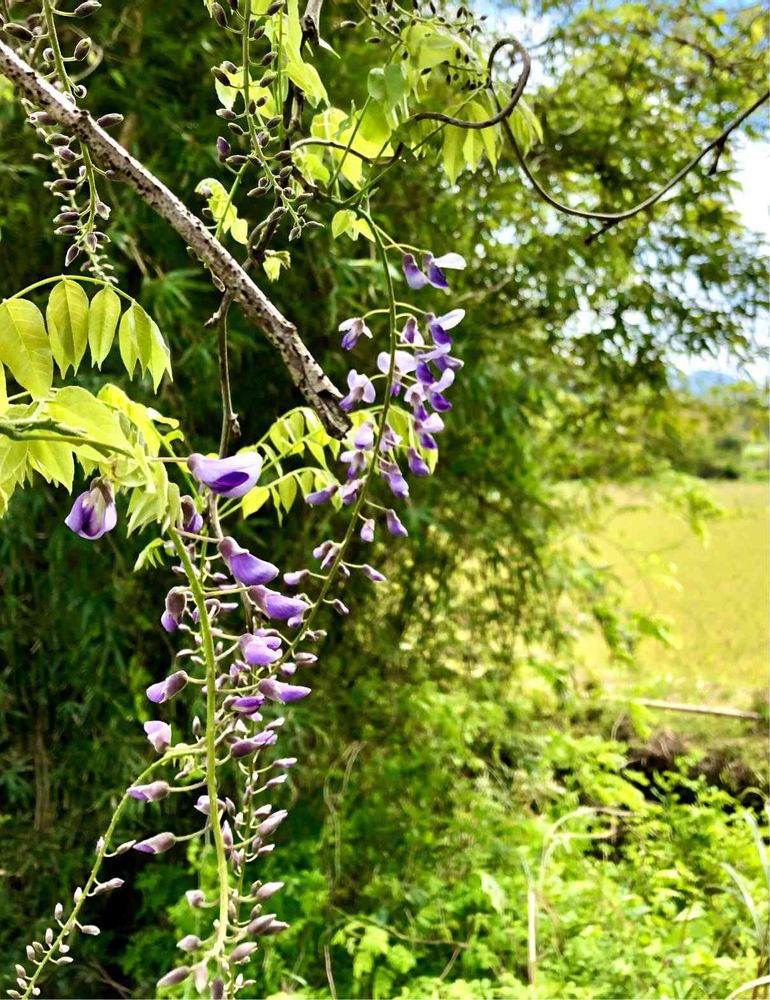 観光地とかで 沢山咲かせてるのも見事できれいだけど、自然の風景の中 控えめに咲くフジは美しいです✨
