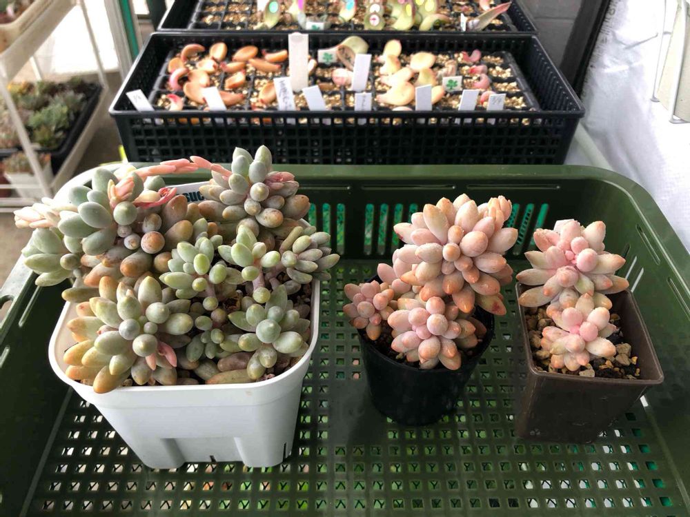 左の鉢は、ふるさと納税でリエールさんから来た群生をバラした苗で、冬の間干からびたまんまでしたが、ようやく根づいたようで最近プクプクしてきました🤗