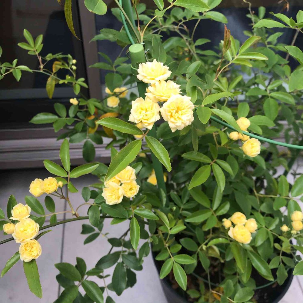 バルコニー/ベランダ,黄モッコウバラ,鉢植えの投稿画像