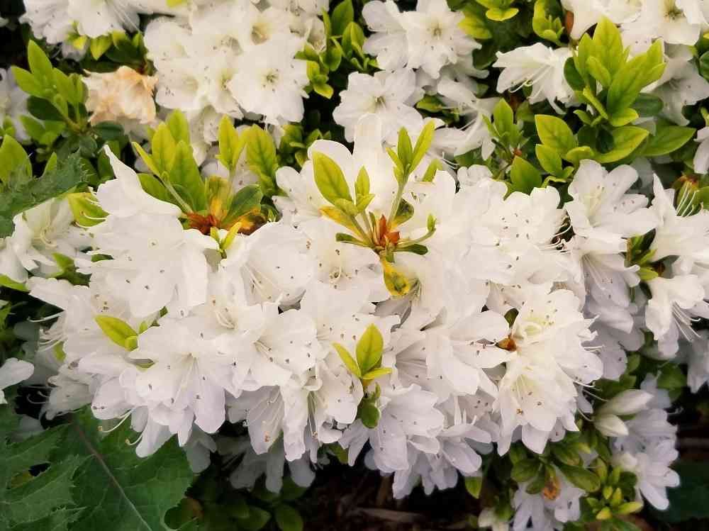犬の散歩道で白いツツジが咲いていました🌺